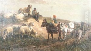 Alexandre Defaux's La Rencontre is a captivating example of 19th-century French landscape painting, embodying the lyrical realism of the Barbizon School. The scene unfolds in a serene forest clearing, where dappled sunlight filters through lush foliage, casting delicate shadows on the mossy ground. Two figures—likely travelers or villagers—pause for a quiet conversation, infusing the composition with narrative warmth. Defaux masterfully balances natural detail with atmospheric softness, showcasing his admiration for Corot’s poetic approach and the plein-air techniques pioneered by the movement. Painted during the 1860s–70s, when artists increasingly turned to nature for inspiration, this work bridges Romanticism’s emotional depth and Impressionism’s evolving brushwork. Though less renowned than his mentor Daubigny, Defaux’s works like La Rencontre remain treasured for their tranquil harmony and technical finesse, offering a window into the quiet moments that defined rural French life.