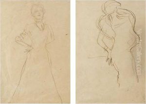 Gustav Klimt’s Recto); Figurate Skizze (Verso) (rose Rosthorn) is a captivating glimpse into the artist’s exploration of figurative abstraction and delicate linear beauty. Created during Klimt’s transitional period, this sketch—possibly a study for a larger composition—showcases his signature fluidity and sensuality, blending realism with ornamental elegance. The work reflects Klimt’s fascination with the female form, rendered in soft, expressive lines that suggest movement and emotional depth. Though less ornate than his famed gold-leafed masterpieces like The Kiss, this piece reveals his foundational draftsmanship and affinity for nuanced gestures. Its historical significance lies in bridging his early academic style with the later Art Nouveau and Symbolist influences that defined his legacy. A rare gem for collectors, it exemplifies Klimt’s ability to convey intimacy even in preparatory sketches.