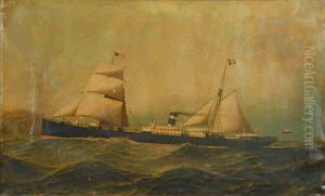 The Steamship President by William Calcott Knell (1805–1875) is a striking maritime oil painting that captures the majestic presence and tragic fate of the ill-fated steamship. Painted around 1840–1850, the artwork reflects Knell’s meticulous attention to detail and his mastery of marine art during the Victorian era. The dramatic composition, with the ship battling churning waves under tumultuous skies, conveys both the grandeur and vulnerability of early steam-powered vessels. Knell, known for his atmospheric seascapes, often romanticized naval subjects—here, his dramatic contrasts of light and shadow heighten the tension of the President’s doomed voyage (it disappeared in 1841 during a transatlantic crossing). While not as widely celebrated as Turner’s marine works, Knell’s painting holds historical significance for documenting 19th-century maritime technology and British maritime culture, merging realism with emotional narrative.