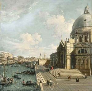 Canaletto’s Santa Maria della Carità and the Grand Canal is a breathtaking representation of 18th-century Venice, pulsating with life and luminous detail. Painted around 1727–1730, this masterpiece captures the bustling Grand Canal with its iconic Santa Maria della Carità church (later part of the Accademia Gallery) framed by gondolas, merchants, and aristocratic palazzos. Canaletto’s precision in architectural rendering and his mastery of light—reflecting off the water and warming the facades—exemplify Venetian Vedutismo, a genre he revolutionized. The painting’s almost photographic accuracy, combined with a poetic atmosphere, made it a precursor to modern landscape painting and a coveted souvenir for Grand Tour travelers. Today, it remains a seminal work in art history, embodying the Enlightenment’s fascination with order, perspective, and the sublime beauty of urban life.