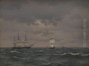 Abraham Storck's A Dutch Man-o'war And Other Shipping On A Blustery Day captures the turbulent majesty of 17th-century maritime life with dramatic energy. The painting depicts Dutch warships and merchant vessels battling fierce winds and choppy seas, their billowing sails and intricate rigging rendered with meticulous detail. Storck, a master of marine painting from the Dutch Golden Age, infuses the scene with a sense of movement—gusts ripple the waves, clouds loom ominously, and the play of light accentuates both peril and grandeur. As part of the maritime genre’s peak in the Netherlands, Storck’s work reflects the nation's naval prowess and global trade dominance. Though less famed than Willem van de Velde the Younger, Storck’s compositions are celebrated for their dynamic realism and atmospheric depth, offering viewers a visceral glimpse into seafaring drama.