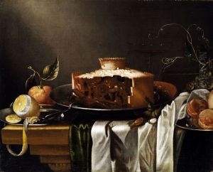 Nature Morte A La Tourte Et Aux Plats De Fruits