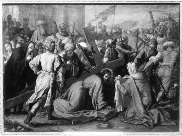 Christ, carrying the Cross, meets Veronica