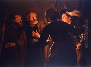 The painting A Boy Singing By Candlelight by Adam de Coster is a striking example of early 17th-century Northern European chiaroscuro, masterfully capturing the interplay of light and shadow to evoke an intimate, almost theatrical moment. A young boy, illuminated solely by the flickering glow of a candle, leans forward as if lending his voice to a soft melody—his face bathed in warm, golden light while darkness envelops the background. De Coster, a Flemish Caravaggist, was renowned for such nocturnal scenes, employing dramatic contrasts influenced by Caravaggio’s revolutionary naturalism. This work exemplifies the Dutch tronie tradition—focusing on expressive character studies rather than formal portraits—and stands as a testament to Baroque innovations in emotional depth and lifelike illumination. It occupies a unique niche in art history, bridging Flemish genre painting and Italianate techniques while showcasing the era’s fascination with everyday moments elevated by virtuosic light effects.