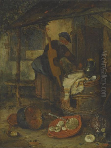 Bring the timeless beauty of Adriaen van Ostade's A Maid by a Door with a Barrel and Vegetables into your home with a handmade oil painting reproduction. Carefully recreated on canvas by skilled artists using traditional techniques, this piece captures the delicate brushwork, subtle light, and vibrant color of the original masterpiece. With museum-level quality and rich texture, it brings elegance and artistic depth to any space. Enjoy free shipping and make this masterpiece a part of your personal collection.