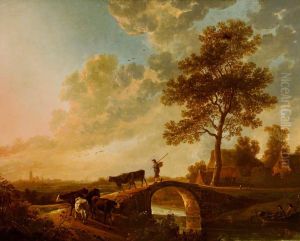 Landscape With Cattle And A Dairy Maid, Small Craft On A River Beyond