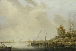 A River Scene with Distant Windmills