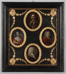 Vier portretjes uit de families Brouwer en Van der Werff bij elkaar in een lijst