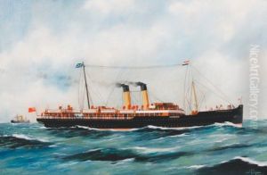 Aimé Stevens' Marine Avec Bateau De Pêche Et Vapeur captures the timeless allure of the sea through a masterful blend of realism and atmospheric drama. Painted in the 19th century during the height of maritime romanticism, this work embodies the Belgian artist's meticulous attention to nautical detail and his ability to convey the raw power of nature. The composition contrasts a humble fishing boat against a looming steamship, symbolizing the tension between tradition and modernity—a recurring theme in Stevens' maritime scenes. His use of muted blues and grays, punctuated by subtle highlights on cresting waves, creates a sense of brooding tranquility. Within art history, Stevens occupies a niche as a skilled marine painter whose works bridge the gap between documentary precision and emotive landscape painting, often compared to the Hague School yet retaining a distinctly Flemish sensibility.