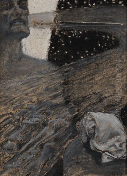 Akseli Valdemar Gallen-Kallela’s Kuolleitten virta ("The River of the Dead") is a hauntingly symbolic masterpiece painted in 1903, capturing Finnish mythology’s mystical essence. Dominated by swirling dark blues and spectral figures floating down a river, the painting exudes a melancholic yet captivating atmosphere, embodying Finland’s national romanticism and Kalevala-inspired themes. Gallen-Kallela’s unique blend of Symbolism and Art Nouveau creates a dreamlike quality, where sinuous lines and subdued contrasts evoke themes of death and the afterlife. Historically significant, this work reflects Finland’s cultural awakening during its struggle for independence, cementing Gallen-Kallela’s position as Finland’s most celebrated national painter. Its emotional depth and mythological roots make it a cornerstone in Nordic Symbolist art.