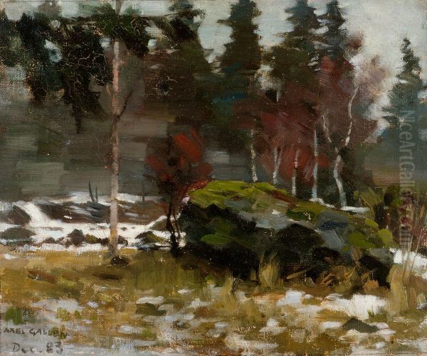 Akseli Valdemar Gallen-Kallela’s Varvinter (Early Winter) is a striking example of Finnish Romantic nationalism, embodying the artist’s deep connection to his homeland’s rugged landscapes. Painted in the late 19th or early 20th century, the artwork captures the stark beauty of a Finnish winter with its muted, almost mystical palette of blues, grays, and whites. Gallen-Kallela’s bold, expressive brushwork and symbolic approach align with the Kalevala-inspired themes that defined his career, bridging Romanticism and early Modernism. As a central figure in Finland’s cultural awakening, his works, including Varvinter, are celebrated for their emotional intensity and national identity, making them pivotal in Nordic art history. The painting’s serene yet melancholic atmosphere evokes the quiet solitude of nature, a hallmark of Gallen-Kallela’s ability to transform landscapes into profound emotional experiences.