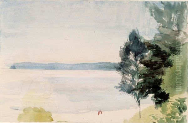 Albert Edelfelt’s Rantamaisema (Shore Landscape) is a serene yet evocative depiction of the Finnish coastline, bathed in the soft, diffused light that characterizes the Nordic summer. Painted in 1889, this work exemplifies Edelfelt’s mastery of naturalism and his ability to capture the fleeting qualities of light and atmosphere. The composition, with its tranquil water, rocky shoreline, and delicate play of reflections, invites viewers into a moment of quiet contemplation. As one of Finland’s most celebrated artists, Edelfelt bridged realism and impressionism, bringing international acclaim to Scandinavian art. Rantamaisema holds a significant place in art history as a testament to the artist’s skill in rendering nature’s subtleties, while also reflecting the growing nationalism in Finnish art during the late 19th century—a period when artists sought to define their cultural identity through landscapes.
