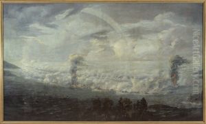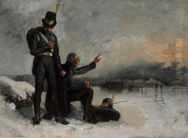 Albert Edelfelt’s Scen fran Finska kriget (Scene from the Finnish War) is a stirring historical painting that immerses viewers in the raw intensity of the 1808–09 Finnish War. With masterful naturalism, Edelfelt captures a frozen battlefield’s bleakness—figures shrouded in snow, muted earthy tones, and the palpable exhaustion of soldiers—blending realism with a haunting emotional depth. As one of Finland’s foremost artists, Edelfelt bridged 19th-century Academic traditions and emerging plein-air techniques, elevating Finnish national identity through art. This work, pivotal in Nordic art history, reflects his skill in merging historical narrative with atmospheric realism, making it a treasured symbol of resilience.