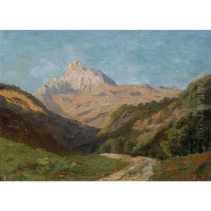 Albert Hertel Gos's Sommerliche Bergpartie captures the sublime tranquility of an Alpine summer through delicate brushstrokes and luminous color harmonies. Painted around the late 19th to early 20th century, Gos's work embodies the Romantic tradition’s reverence for nature while incorporating Impressionist techniques—soft light dappling the mountainsides and loose, expressive foliage renderings suggest fleeting atmospheric effects. Though less widely known than his contemporaries, Gos’s Swiss-German heritage and academic training shine through in his precise yet poetic landscapes. Historically, his works bridge the meticulous realism of the Düsseldorf School with the emotive spontaneity of plein-air painting, offering a glimpse into Central Europe’s transitional art movements before Modernism’s rise. Today, Sommerliche Bergpartie stands as a quiet testament to the era’s pastoral idealism, inviting contemplation through its serene balance of structure and lyricism.