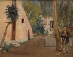 For interior decoration, Piazza di Dante in Verona lends timeless sophistication to spaces favoring classic or transitional aesthetics. Its muted earth tones—ochres, grays, and warm umbers—pair elegantly with leather furnishings, dark wood finishes, or textured linens in neutral palettes. Ideal for a study or formal living room, the painting’s medium-to-large scale (original dimensions or high-quality reproductions around 24x36 inches) commands attention above a mantel or behind a desk. Frame it in a gilded or black wood moulding to harmonize with its historic gravitas. Alternatively, in minimalist offices, its subdued hues and architectural subject matter can balance contemporary furniture while adding cultured depth. Position lighting to mimic Gierymski’s twilight glow, creating a contemplative focal point.