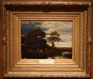Alexander François Loemans’ "Western Landscape" mesmerizes viewers with its romantic depiction of untamed nature. Created during the mid-19th century Dutch Romantic period, the painting exemplifies the era’s fascination with sublime landscapes through its dramatic play of light and shadow across rugged terrain. The composition—featuring gnarled trees framing a sunlit valley—reveals Loemans’ mastery of atmospheric perspective, a technique that positioned him alongside influential Hague School painters. While not as widely recognized as his contemporary Barend Cornelis Koekkoek, Loemans’ works hold significance for bridging Dutch Golden Age traditions with emerging plein-air sensibilities. The painting’s subtle chromatic gradation from warm foreground earth tones to cool distant blues demonstrates his technical refinement, particularly in capturing transient natural light—a quality that earned his landscapes royal patronage during his lifetime. Art historians note this work’s transitional style, anticipating the realism that would dominate later European landscape painting.