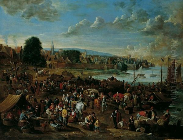 Alexander van Bredael’s Harbour Scene with View of a Town transports viewers to a bustling 17th-century Flemish port, capturing the vibrant energy of maritime trade with exquisite detail. The lively scene depicts merchant ships anchored along a sunlit waterfront, their sails billowing gently as figures unload goods and converse animatedly—a testament to Flanders' golden age of commerce. Van Bredael’s meticulous brushwork and warm palette, dominated by earthy browns, golden yellows, and serene blues, evoke a sense of prosperity and harmony with nature. As a prominent Flemish Baroque painter, he masterfully blended genre and landscape traditions, infusing everyday life with idealized grandeur. Though less renowned than Rubens or Van Dyck, his works remain prized for their narrative richness and atmospheric depth, offering valuable insights into Northern European coastal life during the period.