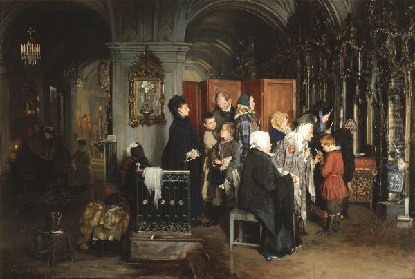 Bring the timeless beauty of Alexei Korzukhin's Before confession into your home with a handmade oil painting reproduction. Carefully recreated on canvas by skilled artists using traditional techniques, this piece captures the delicate brushwork, subtle light, and vibrant color of the original masterpiece. With museum-level quality and rich texture, it brings elegance and artistic depth to any space. Enjoy free shipping and make this masterpiece a part of your personal collection.
