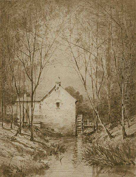 Alexey Bogolyubov's The Watermill in Veules (1864) is a captivating example of 19th-century Russian landscape painting, blending luminous realism with subtle romanticism. The scene depicts a serene watermill nestled along the Veules River in Normandy, where dappled sunlight filters through lush foliage, reflecting softly on the tranquil water. Bogolyubov’s meticulous brushwork and keen eye for atmospheric effects—honed under the influence of the Barbizon School—imbue the composition with poetic vitality, elevating rural simplicity into an idyllic vision. As a distinguished marine painter and academician, Bogolyubov bridged Russian and European traditions, making this work a testament to his technical mastery and cross-cultural sensitivity. Today, it stands as a significant piece in Russia’s realist movement, reflecting the era’s fascination with nature’s harmony and the rising prestige of plein air painting.