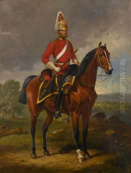 Bring the timeless beauty of Alfred F. De Prades's Portrait Of A British Dragoon Guard On Horseback into your home with a handmade oil painting reproduction. Carefully recreated on canvas by skilled artists using traditional techniques, this piece captures the delicate brushwork, subtle light, and vibrant color of the original masterpiece. With museum-level quality and rich texture, it brings elegance and artistic depth to any space. Enjoy free shipping and make this masterpiece a part of your personal collection.