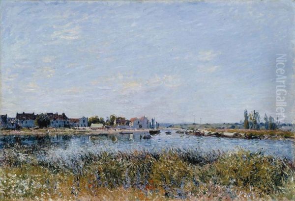 Alfred Sisley's Saint-Mammes, Morning (c. 1881) is a luminous example of Impressionist landscape painting, capturing the tranquil beauty of the rural town near the confluence of the Loing and Seine rivers. Bathed in soft morning light, the scene depicts quiet waters reflecting pastel skies, with boats gently floating near the shore, surrounded by lush greenery and faint suggestions of village life in the distance. Sisley's loose, expressive brushstrokes and delicate interplay of light and shadow embody the essence of Impressionism, a movement he championed alongside Monet and Renoir. Unlike his peers, Sisley remained devoted almost exclusively to landscapes, and this work showcases his mastery of atmospheric effects and serene composition. Though less commercially successful in his lifetime, his works, including Saint-Mammes, Morning, are now celebrated for their lyrical purity and contribution to 19th-century plein air painting, bridging Romanticism and modernism.