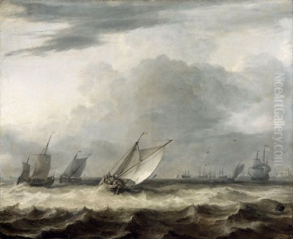 In Allaert van Everdingen’s Boats in High Winds, the dramatic tension of nature’s might unfolds on canvas. Dark, brooding clouds loom over churning waters, where small vessels struggle against the relentless gusts—every brushstroke conveys motion and urgency. Painted in the mid-17th century, this Dutch Golden Age masterpiece exemplifies Everdingen’s mastery of marine and landscape scenes, blending realism with an almost poetic emotional intensity. Trained under Roelandt Savery and influenced by Rembrandt’s chiaroscuro, Everdingen was pivotal in shaping Northern European landscape painting, particularly known for his Scandinavian-inspired rugged coastal scenes. Unlike the serene harbors of his contemporaries, his works often emphasized nature’s untamed power, foreshadowing Romanticism’s fascination with the sublime. Today, Boats in High Winds remains celebrated for its dynamic composition and atmospheric depth, bridging the gap between Dutch realism and later expressive traditions.