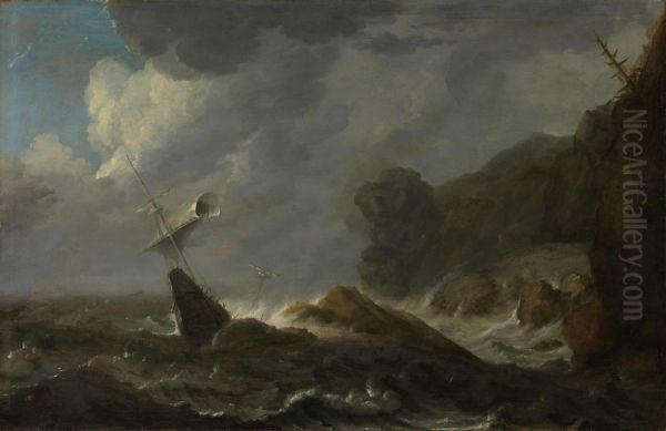 Shipwreck on a Rocky Coast by Allaert van Everdingen (1621–1675) captures the dramatic power of nature with breathtaking intensity. Painted in the Dutch Golden Age, this work belongs to Everdingen’s maritime and rugged Nordic landscapes—a rarity among Dutch artists of his time. Inspired by travels to Scandinavia, Everdingen infused his compositions with turbulent waves, jagged cliffs, and stormy skies, pioneering an aesthetic that later influenced Jacob van Ruisdael’s epic seascapes. The painting’s chiaroscuro contrasts amplify the perilous struggle between man and sea, emphasizing humanity’s fragility amidst the sublime fury of nature. Everdingen’s meticulous brushwork balances realism with emotional grandeur, securing his place as a bridge between early Dutch marine painting and Romantic landscape traditions.