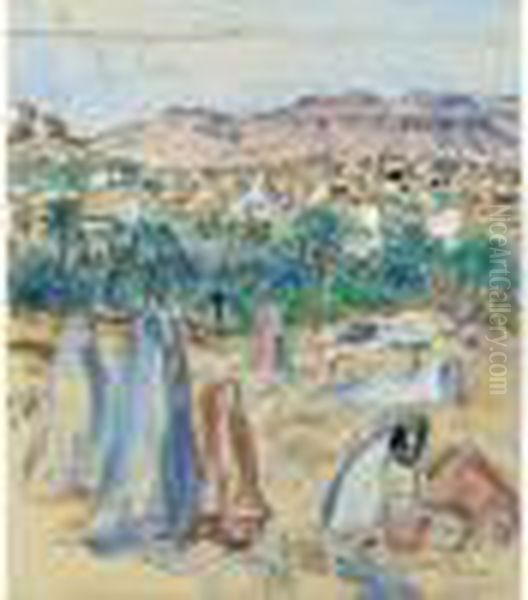 Alphonse Étienne Dinet’s Le Vendredi Au Cimetière ("Friday at the Cemetery") is a captivating oil painting that immerses viewers in the quiet solemnity of Algerian daily life during the colonial period. The artwork depicts Muslim women clad in white garments visiting graves under a luminous sky, with Dinet’s masterful brushwork capturing the interplay of light and shadow on fabric and terrain. Painted in 1888 during Dinet’s Orientalist phase, it reflects his deep engagement with North African culture—later leading to his conversion to Islam—while retaining Western academic realism infused with Impressionistic sensitivity. Celebrated for its ethnographic accuracy, the piece diverges from exoticized Orientalist clichés by presenting spiritual rituals with dignity, securing Dinet’s position as a bridge between European and Maghrebi artistic traditions. Today, it’s regarded as a seminal work documenting cross-cultural encounters in 19th-century art.