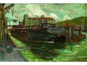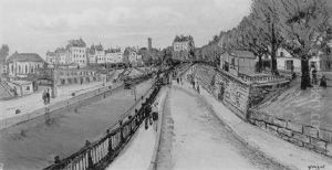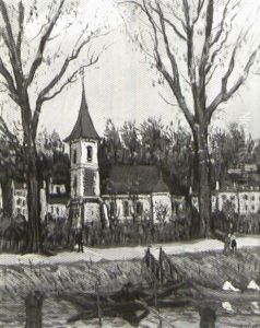 Rameurs Sur La Riviere Devant L'eglise Du Village