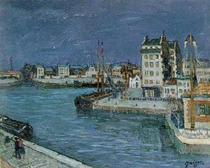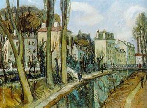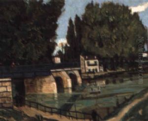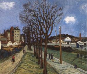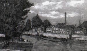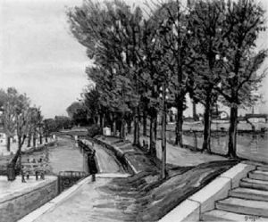 Pecheur Et Maison Au Bord Du Canal De La Villette