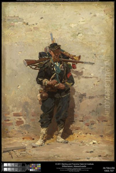 Alphonse de Neuville's Bugler of the Light Infantry captures a gripping moment of tension and heroism characteristic of 19th-century military romanticism. Painted in 1874 shortly after the Franco-Prussian War, the work exemplifies Neuville’s mastery of dramatic realism—a hallmark of the French academic tradition. The composition centers on a lone bugler mid-performance, his pose dynamic yet fraught with urgency against a smoke-filled battlefield backdrop. De Neuville’s meticulous attention to uniform details and atmospheric light heightens the emotional intensity, immersing viewers in the visceral reality of war. Though less monumental than his panoramic battle scenes, this painting holds significance as a poignant, human-scale tribute to soldiers’ valor. It reflects the era’s nationalist sentiment while showcasing the artist’s influence in bridging academic precision with narrative depth—a precursor to later war reporting in visual art.