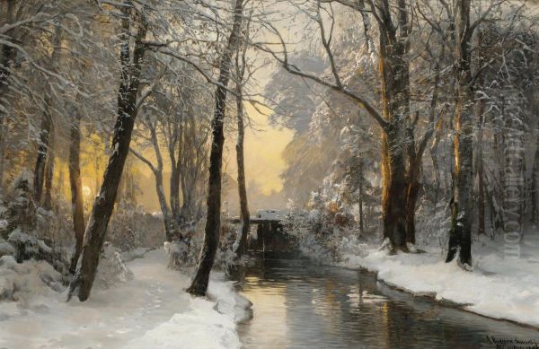 The painting Winter Woodland at Dawn by Danish artist Anders Andersen-Lundby (1841–1923) captures the serene beauty of a snow-covered forest bathed in the soft glow of early morning light. Known for his romantic winter landscapes, Andersen-Lundby masterfully balances delicate details with atmospheric depth, infusing the scene with a sense of quiet enchantment. The composition, typical of late 19th-century Scandinavian realism, features slender birch trees dusted with snow, their pale trunks standing in stark yet harmonious contrast against the cool blues and pinks of dawn. Light filters gently through the branches, casting elongated shadows on the untouched snow—a hallmark of Andersen-Lundby’s ability to convey both stillness and subtle movement. Though less internationally renowned than his contemporary Peder Mørk Mønsted, Andersen-Lundby’s works hold significance in Nordic art history for their poetic portrayal of nature’s tranquility, often evoking themes of solitude and renewal.