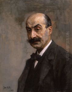 For display, this portrait's dynamic energy lends itself to spaces favoring dialogue and creativity. A sophisticated home library with walnut bookshelves would amplify its gravitas, while the gray-blue tones in the background could inspire wall colors (try Farrow & Ball's Parma Gray for subtle harmony). At 92 × 65 cm, the composition demands eye-level hanging—ideal above a Chesterfield sofa or flanked by arched brass sconces to echo its organic brushwork. In offices, pair it with Biedermeier furniture for academic rigor or mid-century modern pieces for contrast; the black suit's chromatic weight anchors lighter spaces beautifully. For framing, opt for a slender gilt scoop profile (5-7cm width) to honor its 1890s provenance without competing with Zorn's vigorous strokes. Strategic lighting (2700K LED spots at 30-degree angles) will enhance the textures while protecting the fragile oil surface from UV exposure.