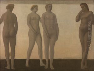 For spaces seeking serene elegance, Interieur’s muted ochres and diffused glow make it ideal for a reading nook, bedroom, or minimalist office. Frame it in slim, natural wood to complement its organic warmth, or contrast with matte black for contemporary contrast. Position it where morning light can echo its luminous tones—near a window or alongside earthy textiles like linen or wool. A medium-sized reproduction (24x30 inches) ensures visibility without overwhelming smaller rooms. Pair it with Scandinavian furniture, such as a Hans Wegner chair or muted ceramics, to enhance its restrained charm. Alternatively, let it anchor a neutral scheme with sage greens or dusty blues for harmony. Its quiet introspection suits spaces meant for relaxation or creative focus, transforming walls into havens of calm sophistication.