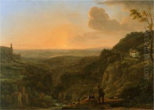 Annibale Carracci's A River Valley Seen Through a Double Rock Arch transports viewers into an idyllic, sun-drenched Italian landscape. The painting, created in the late 16th or early 17th century, showcases Carracci's mastery of the classical landscape tradition, blending naturalism with poetic idealization. Two towering rock arches frame a serene river valley, where soft golden light bathes distant hills, winding waterways, and clusters of trees, evoking harmony between nature and geometry. This work exemplifies Carracci’s pivotal role in transitioning from Mannerism to Baroque art, influencing later masters like Claude Lorrain and Poussin. As a co-founder of the Bolognese School, Carracci’s emphasis on balance and draftsmanship laid groundwork for academic art, making this piece both visually enchanting and historically significant—a bridge between Renaissance precision and Baroque dynamism.