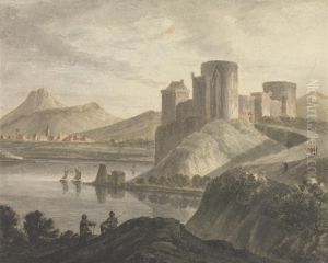 Figures In A Wooded River Landscape; Figures By Buildings In A Classical Landscape (pair)