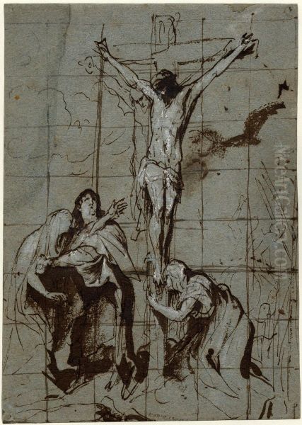 Christ on the Cross, with the Virgin, St John and the Magdalene below, study for a painting