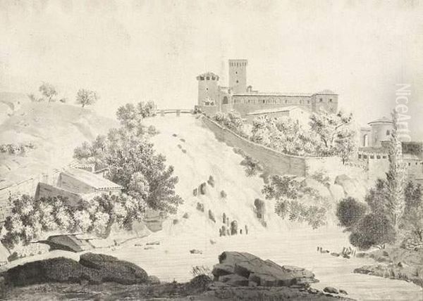 Vue D'un Chateau En Italie by Antoine Felix Boisselier transports viewers to the sun-drenched landscapes of 19th-century Italy, where soft golden light bathes a picturesque castle nestled amid rolling hills. Boisselier, a French Romantic painter, masterfully blends precision and poetry—his brushwork captures architectural details with academic rigor while infusing the scene with an idyllic, almost nostalgic warmth. This work reflects the era’s fascination with Italianate scenery, popularized by the Grand Tour, and showcases Boisselier’s skill in harmonizing nature and human craftsmanship. Though less renowned than his contemporary Jean-Baptiste-Camille Corot, Boisselier’s landscapes hold historical significance for their contribution to the Romantic movement’s celebration of sublime beauty and emotional resonance. The painting’s serene yet majestic aura bridges neoclassical discipline and Romantic lyricism, making it a quiet gem in 19th-century European art.