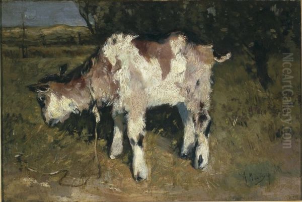 Anton Mauve's Goat (1880s) exemplifies the Hague School's poetic realism, capturing rural simplicity with quiet dignity. This intimate oil study depicts a solitary goat tethered in a sun-dappled meadow, rendered in Mauve's signature muted palette of ochres, moss greens and pearly grays. The artist masterfully balances precise observation - from the animal's textured coat to the delicate play of light on its horns - with atmospheric softness that anticipates Impressionism. As Vincent van Gogh's cousin-by-marriage and early mentor, Mauve's pastoral works significantly influenced Dutch art's transition from Romanticism to naturalism. The painting's meditative quality reflects the plein air philosophy of the Hague School, elevating mundane subjects through nuanced tonal harmonies and emotional resonance that still whisper to modern viewers.