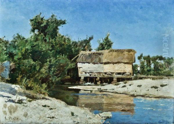 Azenha by Antonio Carvalho de Silva Porto is a captivating 19th-century Portuguese landscape painting that embodies the serene beauty of rural life. Silva Porto, a key figure in Portuguese Naturalism, masterfully captures the soft luminosity of the countryside, with delicate brushstrokes blending earthy tones and muted greens to evoke tranquility. The painting likely depicts a traditional azenha (watermill), harmonizing human activity with nature—a recurring theme in Porto’s work. His attention to light and atmospheric effects reflects influences from the Barbizon School, yet he retains a distinctly Portuguese sensibility. As a pioneer of Arte Naturalista, Silva Porto’s works bridge Romanticism and modern realism, making Azenha a testament to his role in reshaping Portugal’s artistic identity during the late 1800s.