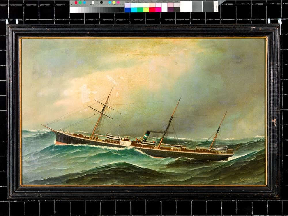 The painting Het stoomschip 'P. Caland' by Antonio Nicolo Gasparo Jacobsen captures the grandeur of 19th-century maritime travel with remarkable precision. Jacobsen, a prolific marine artist, depicts the steam-powered vessel cutting through the waves with a sense of motion and industrial strength, framed by a dramatic sky that balances realism with romantic atmosphere. Painted in the late 1800s, the work exemplifies the artist’s signature Dutch-influenced realism, combining meticulous ship detailing with emotive seascape backdrops. As one of over 6,000 maritime scenes Jacobsen created, this piece reflects his role in documenting the golden age of steamships, offering both historical value and artistic mastery. Its bold composition and technical prowess place it among significant marine paintings of the era, appealing to collectors of maritime art and historians alike.