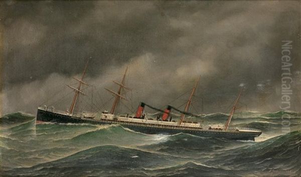 Antonio Nicolo Gasparo Jacobsen’s Le Paquebot "la Normandie" A Sec De Voiles captures the grandeur of the famed French ocean liner SS Normandie with masterful precision. Painted circa late 19th to early 20th century, this maritime artwork exemplifies Jacobsen’s signature Photorealist style—honed through his prolific career documenting ships with near-photographic detail. The painting showcases the Normandie stripped of sails ("à sec de voiles"), emphasizing its sleek Art Deco design and towering smokestacks against a softly rendered seascape. Jacobsen, known as the "Audubon of Steam Vessels," transformed nautical scenes into historical records, making his works treasured artifacts of maritime heritage. This piece not only reflects technological pride of the transatlantic liner era but also solidifies Jacobsen’s status as America’s preeminent marine painter, bridging Romanticism’s drama and Industrial Age pragmatism.