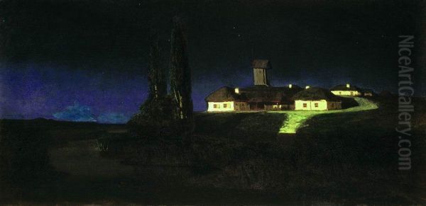 Ukrainian Night by Arkhip Kuindzhi is a mesmerizing masterpiece that captures the serene yet mystical beauty of Ukraine after sundown. Painted in 1876, this oil-on-canvas work bathes the viewer in ethereal moonlight, transforming a rural village into a dreamscape. Kuindzhi’s signature luminous style—achieved through bold contrasts and layered glazes—imbues the scene with an almost supernatural glow, where the darkened earth meets a radiant, silvery sky. A leading figure of Russian Realism and Romanticism, Kuindzhi was celebrated for his innovative use of light and color, pushing boundaries long before Impressionism. Ukrainian Night remains iconic for its emotional depth and technical brilliance, securing Kuindzhi’s legacy as a pioneer of atmospheric landscape painting. The work’s quiet intensity invites contemplation, blurring the line between reality and poetic imagination.