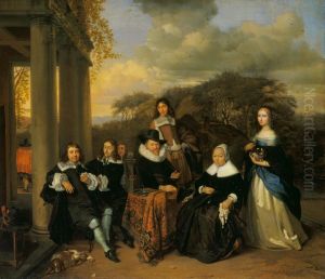 A Portrait Of A Family Together With A Maid Near A Dutch Polder