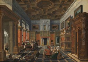 Eine Festliche Gesellschaft Am Tisch In Einem Renaissance-saal