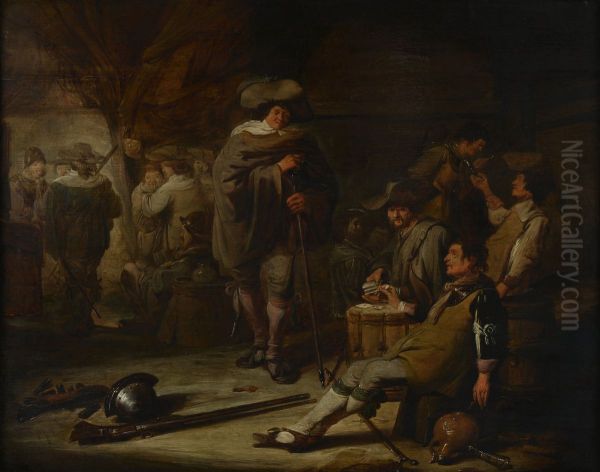 Interieur met drinkende soldaten bij kaartspel Oil Painting by Benjamin Gerritsz Cuyp