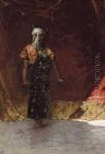 Le Gardien De Palais by Benjamin Jean Joseph Constant (1845–1902) is a mesmerizing Orientalist masterpiece that transports viewers to an opulent yet enigmatic world. Painted in the late 19th century, during the height of European fascination with the Near East, the artwork exudes a sense of exotic grandeur. The composition depicts a palace guard, clad in richly textured fabrics and adorned with intricate details, standing against an ornate architectural backdrop. Constant’s meticulous brushwork and vibrant palette—awash with deep reds, golds, and earthy tones—create a dramatic interplay of light and shadow, evoking both authority and mystery. As a prominent figure of the Orientalist movement, Constant blended Romanticism’s emotional intensity with academic precision, capturing the Western imagination of Eastern splendor. Though criticized today for its idealized colonial gaze, the painting remains significant for its technical mastery and as a lens into 19th-century cultural exchanges.