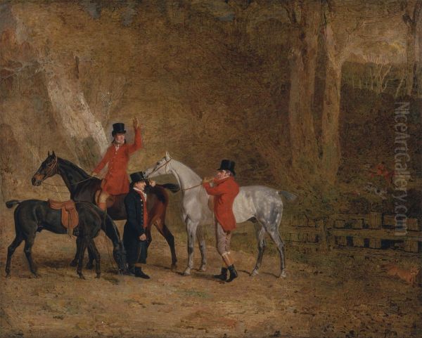 Benjamin Marshall’s Foxhunting Scene captures the vibrant energy and aristocratic grandeur of early 19th-century British sporting culture. The painting, executed in Marshall’s signature dynamic style, depicts a thrilling chase through the countryside, with riders clad in scarlet coats surging forward on powerful steeds, their hounds weaving through the landscape. Marshall, an accomplished equestrian artist, infuses the scene with movement and drama through loose, rhythmic brushstrokes—a nod to Romanticism’s celebration of nature and emotion. This work exemplifies his mastery in merging portraiture with landscape, offering both a narrative of the hunt and a meticulous study of horses and rural life. Historically, it reflects the Georgian era’s fascination with field sports, making it a valuable piece for understanding British social history and sporting art, a genre Marshall helped elevate.