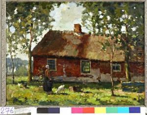 Berend Jan Barand Brouwer’s Geitje Voeren Op Zonnig Boerenerf captures the idyllic charm of rural Dutch life in the 19th century. The painting radiates warmth, depicting a sunlit farmyard where a child tenderly feeds a young goat, surrounded by rustic farm buildings and lush greenery. Brouwer’s meticulous attention to detail and soft, naturalistic color palette exemplify the Romantic-era emphasis on pastoral beauty and sentimental storytelling. As a lesser-known but skilled Dutch painter, Brouwer contributed to the tradition of genre painting, which flourished in the Netherlands during this period. His work aligns with contemporaries like Jozef Israëls, though with a gentler, more intimate approach. The painting’s nostalgic yet serene quality offers a glimpse into 19th-century rural values, making it a subtle but valuable piece in the canon of Dutch Romanticism.