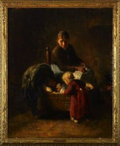 Bernard Johann De Hoog’s A Mother Knitting With Her Two Children At Her Side is a tender portrayal of domestic warmth and maternal love, characteristic of the Hague School’s intimate realist style. Painted in the late 19th or early 20th century, the artwork captures a quiet moment bathed in soft, natural light, with the mother’s focused knitting and the children’s serene presence radiating harmony. De Hoog, renowned for his rural and familial scenes, employs delicate brushwork and muted earth tones to evoke nostalgia—a hallmark of Dutch genre painting’s legacy. Though less prominently studied than works by contemporaries like Israëls, this piece exemplifies sentimental realism’s enduring appeal in European art history, bridging Vermeer’s quiet interiors and late Impressionism’s emotive touches.